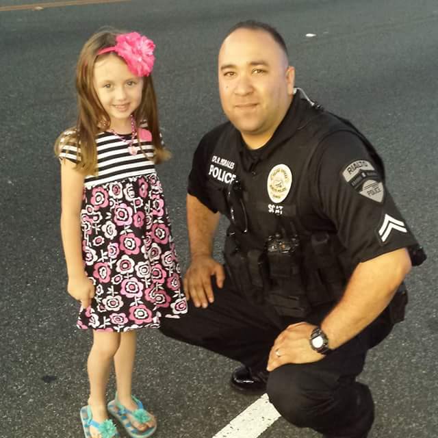 Sgt Morales has worked on many units that have worked to remove dangerous criminals from our streets as well as acting as a visable community representation for Rialto Police Department. Sgt Morales worked with the SCAT team that worked to bring the gang restriction programs that have worked to cripple gangs that had terrorized Rialto residents for decades. Sgt Morales has also worked with the confines of Rialto Police Departments youth Programs that had a goal of stopping youth crime before it got out of hand. Also as you can see in the picture above Sgt Morales does not shy away from a young ladies request for a photo. Sgt Morales seems to have a goal of wanting the youth to see him and his co-workers as a source of help and comfort and not be afriad to come to them when they need help. Sgt Morales also has a sports background as a boxer in the battle of the badges competitions.
