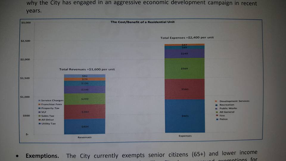 The chart above shows how expensive each residential unit is in Rialto Vrs the amount of money that is brought in by these units and where a lion share of the money comes from. As you can see the single largest amount of revenue is from the Utility Users Tax. The chart above also spells out that each residential unit costs the city $800 Thousand more than they bring into the city.