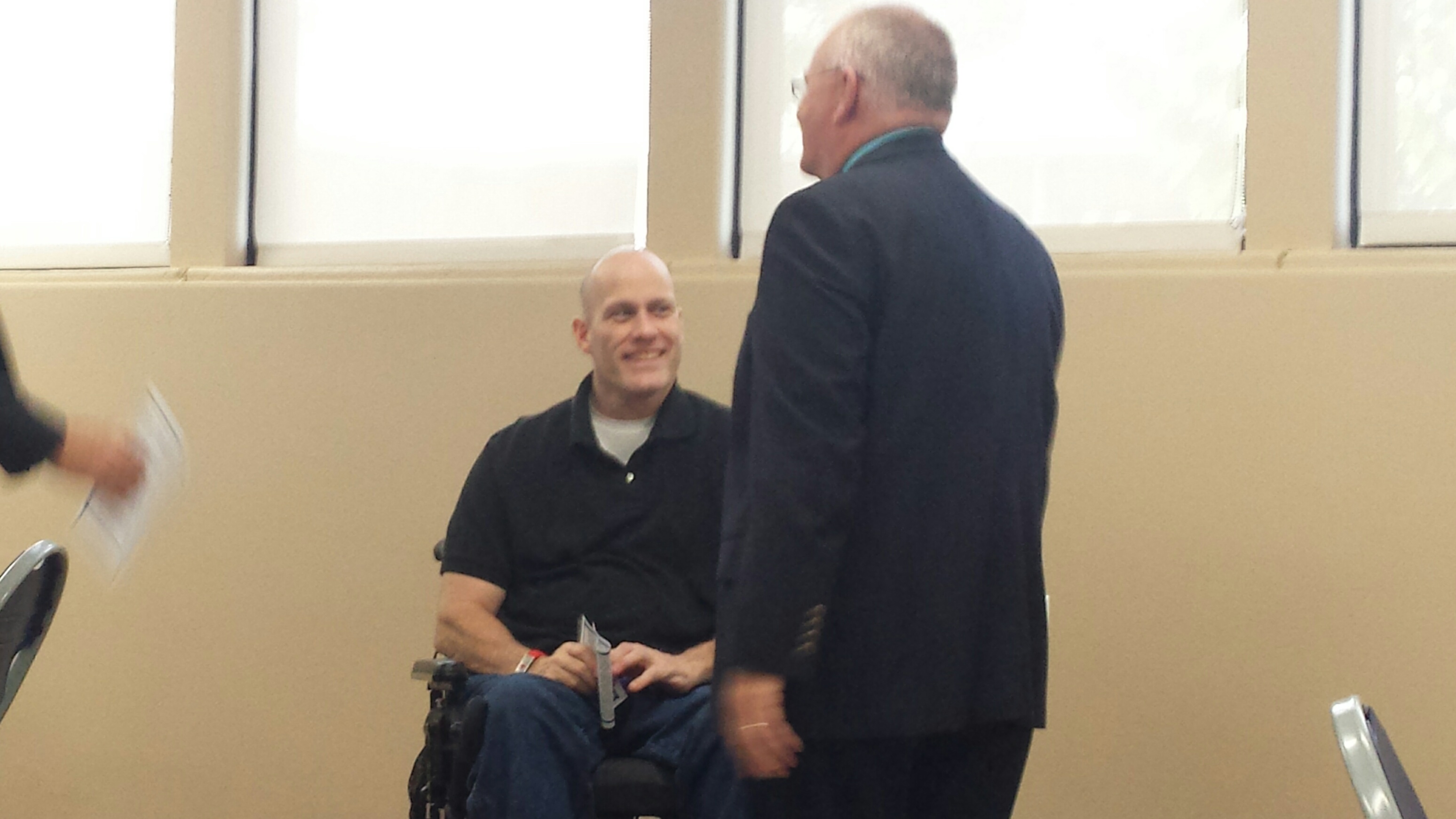Mike Story speaking with City Councilman Shawn O’Connell both men were smiling and having a good conversation. Councilman Shawn O’Connell spoke about Mr. Story’s character and dedication to being ethically balanced. Councilman Shawn O’Connell also spoke to Mr. Story being a person that works to make sure that city government is transparent and fair.