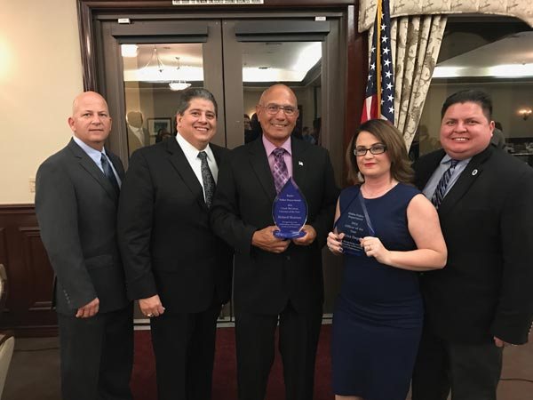 Courtesy Photo/rialto police From left: Cpt. William Wilson, Chief Randy De Anda, Volunteer of the Year Richard Montano, Ofc.of the Year Erica Duque and Councilman Rafael Trujillo. Third annual Rialto Police Awards.