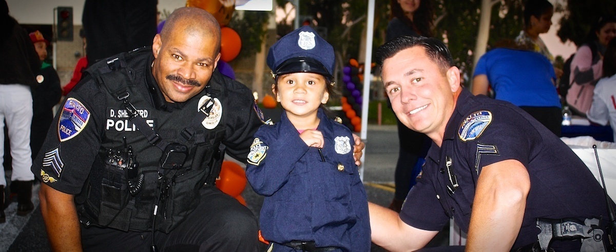 Sargent Nelson posing for a picture at Rialto’s National Night Out with Former Traffic Sargent Shepard